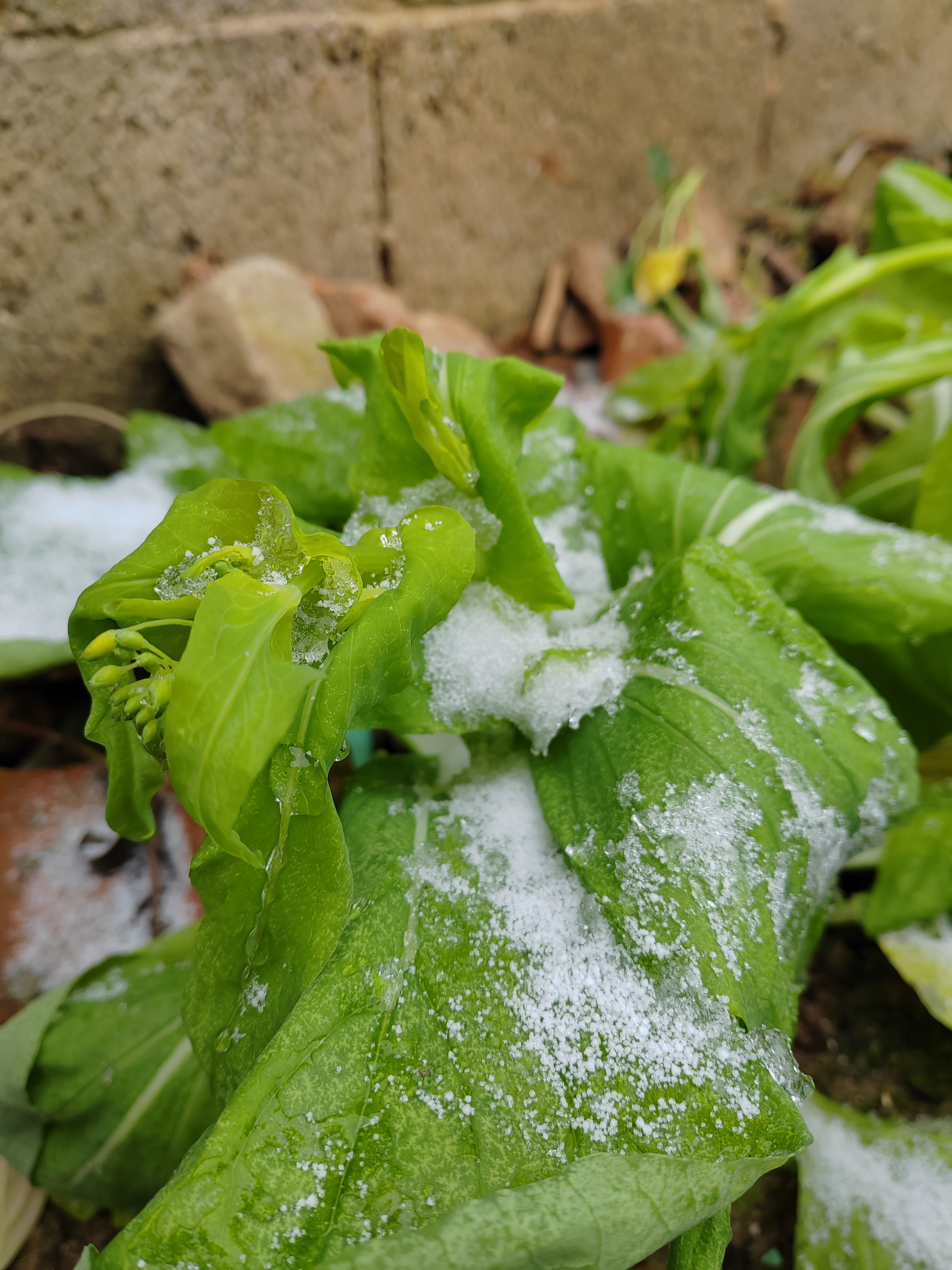 经历寒流,冰雪霜冻过的小白菜, 一片的紧缩、萎靡、潦草之态, 等太阳回来,温度回升,她们也很快滴支棱起来了,而且经此一冻的白菜,吃起来水润香甜。 白菜的创伤、修复、焕发新生之旅。 我们人也是如此呀,如果你正经历风暴,请相信,你的生命不会困于此,也接受自己的一切情绪感受和反应,我们会借着一点光与温暖,跃迁新生,更丰盈,更自在。