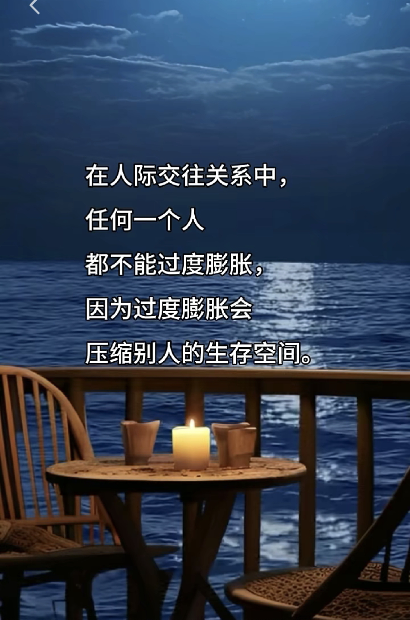 在人际交往关系中,任何一个人 都不能过度膨胀,因为过度膨胀会 压缩别人的生存空间。