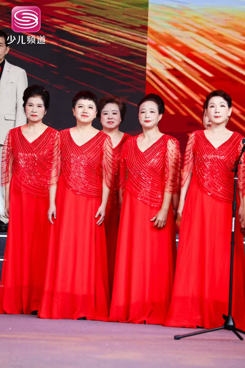 我是深圳春天合唱团的女高音,这两张照片就是我们在表演的时候的图片 唱歌让我们长寿,唱歌产生内啡肽。唱歌产生多巴胺 给我们能量的一个好活动,不管我们唱得怎么样,无所谓好坏,我们可以自己自娱自乐呀