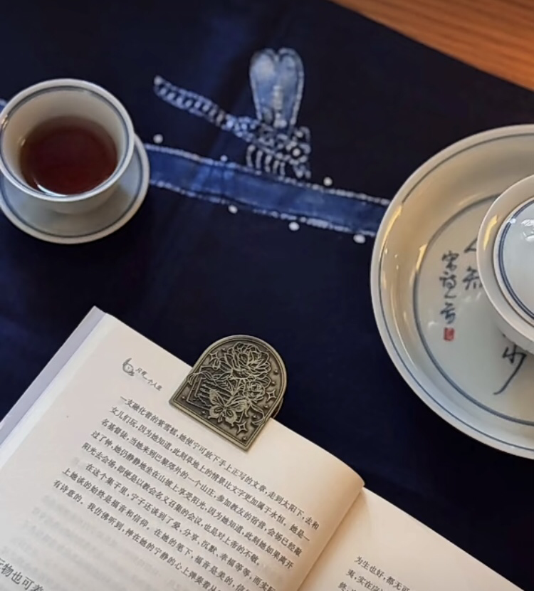终于找到融化冬日沉寂的温暖良方 蜗居在我亲手搭建的暖光角落 品茶、阅卷、赏纹 热茶在杯里晕开暖光 读几段文字温热思绪 眼前垂落一袭蜡染桌旗—— 鱼戏莲荷的纹样在木质桌面上 竟像在冬日里漾开了一池不会冻结的夏意 光影恍惚时 荷花仿佛在蒸汽里缓缓舒展 整张书桌都成了冬日温室里的微型池塘 茶烟 书页 手工蜡染特有的纹样 那些因蜡封而留白的弧线 在蓝与白的古老纹样中 触到了手作那份穿越季节的美好