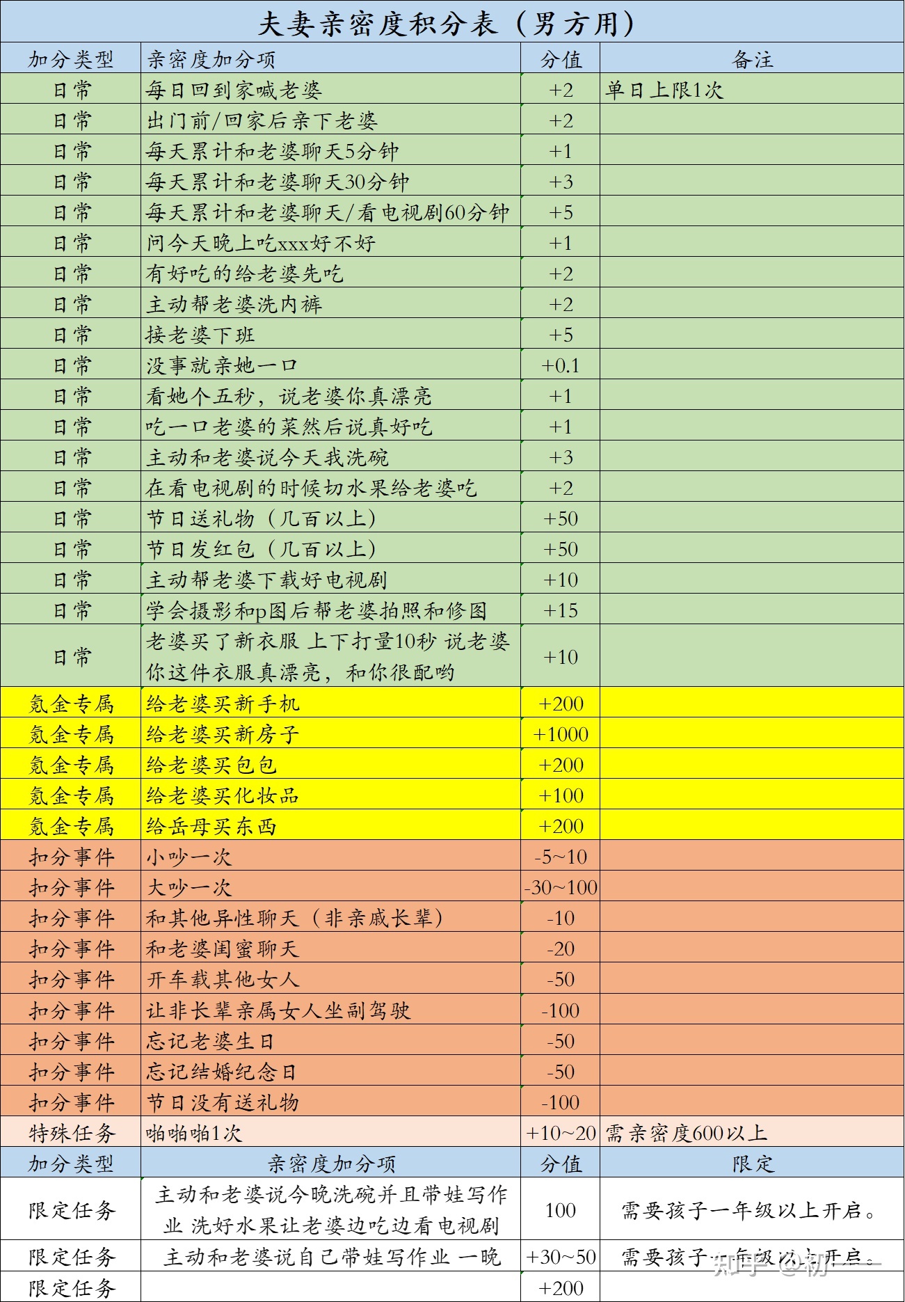 亲密感是两人之间的特殊连结,有时不需要语言。它是给另一个人可放松营造自己的空间,是放心地把你的心完全交给另一人而从未想过背叛,是通过在一起心灵相融而发现新的世界。 很多中国婚姻,都缺乏亲密感,从而不再是亲密关系,只是责任关系,义务关系,亲情关系。 没有亲密感的婚姻,通常只有两种结果,离婚和出轨。 (图中所示建议来自网络收集,其中部分建议可根据实际情况改变)