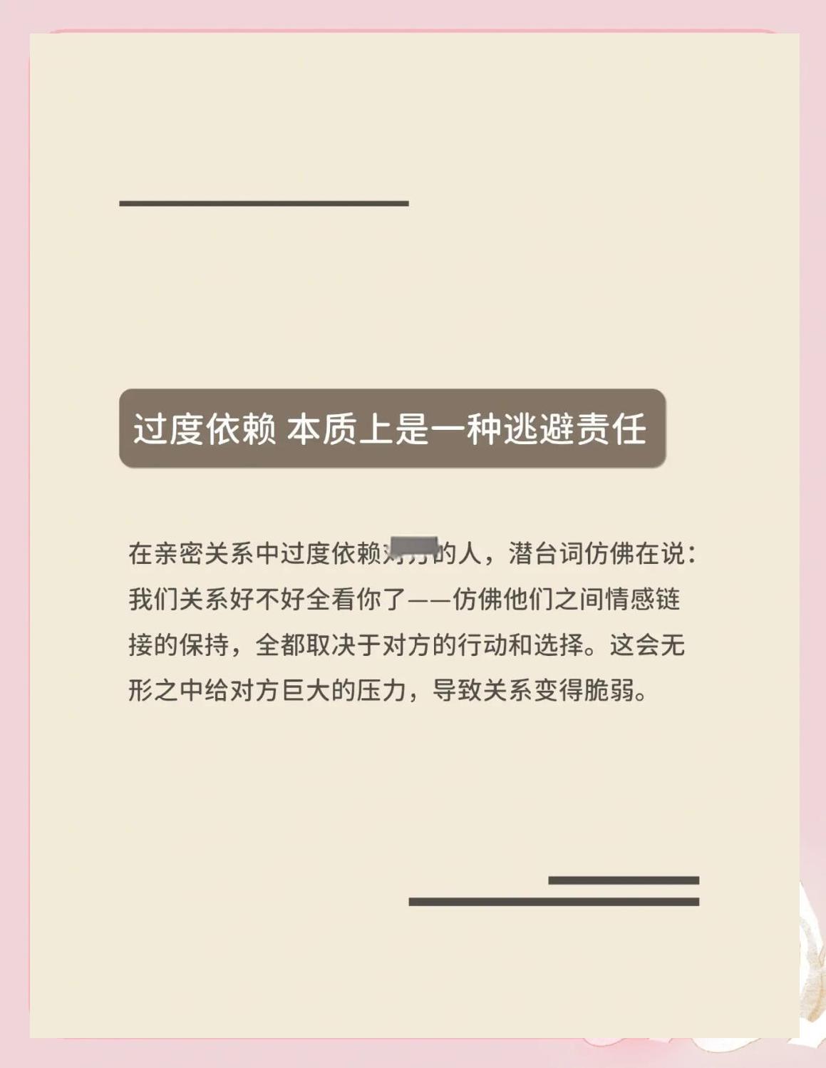 你是否总在亲密关系里害怕失去自我,却又无法承受一个人的孤独? 过度依赖是自我力量感缺失的补偿,而非爱的本质,独立与依恋本可以平衡共存。 当你将自我价值完全寄托于他人的认可和陪伴,对方的任何疏离都会引发你的生存恐惧。这不是深情,而是情感系统的单点故障——你把情绪的遥控器,永远交到了别人手里。 真相是:健康依赖的前提是完整自我。那些“没你不行”的宣言背后,往往藏着“没有自己”的隐秘恐惧。 心理咨...