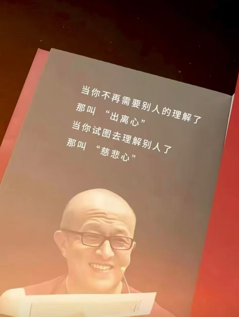 当你不再需要别人的理解了,那叫“出离心”; 当你试图去理解别人了,那叫“慈悲心” ~~这是宗萨钦哲仁波切的一段开示,它用非常通俗的语言,把佛教里两个核心的修行心法传递给我们,我们可以从心理和修行两个层面来做深层解读: 1. 关于“出离心”:不再需要别人的理解 - 本质是课题分离:不再把“被他人理解”当作自我价值的证明,意味着你从“需要外界认可”的执念里跳了出来,不再被他人的评价、误解裹挟情...