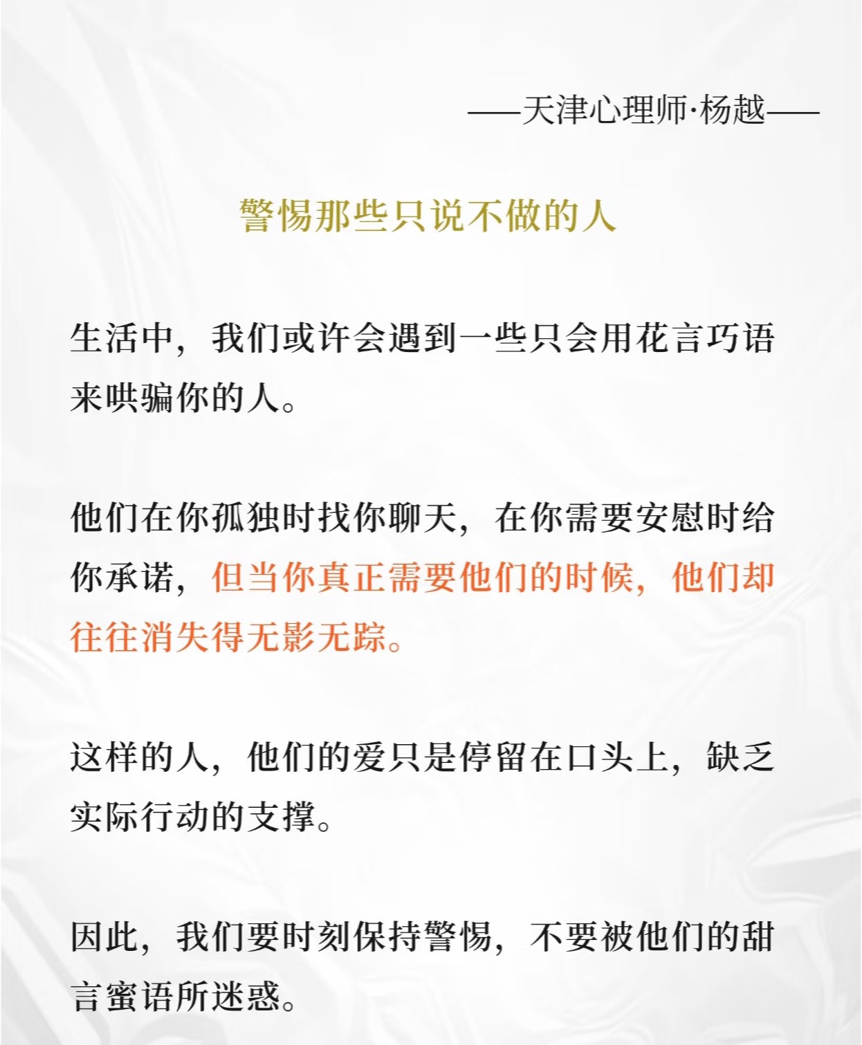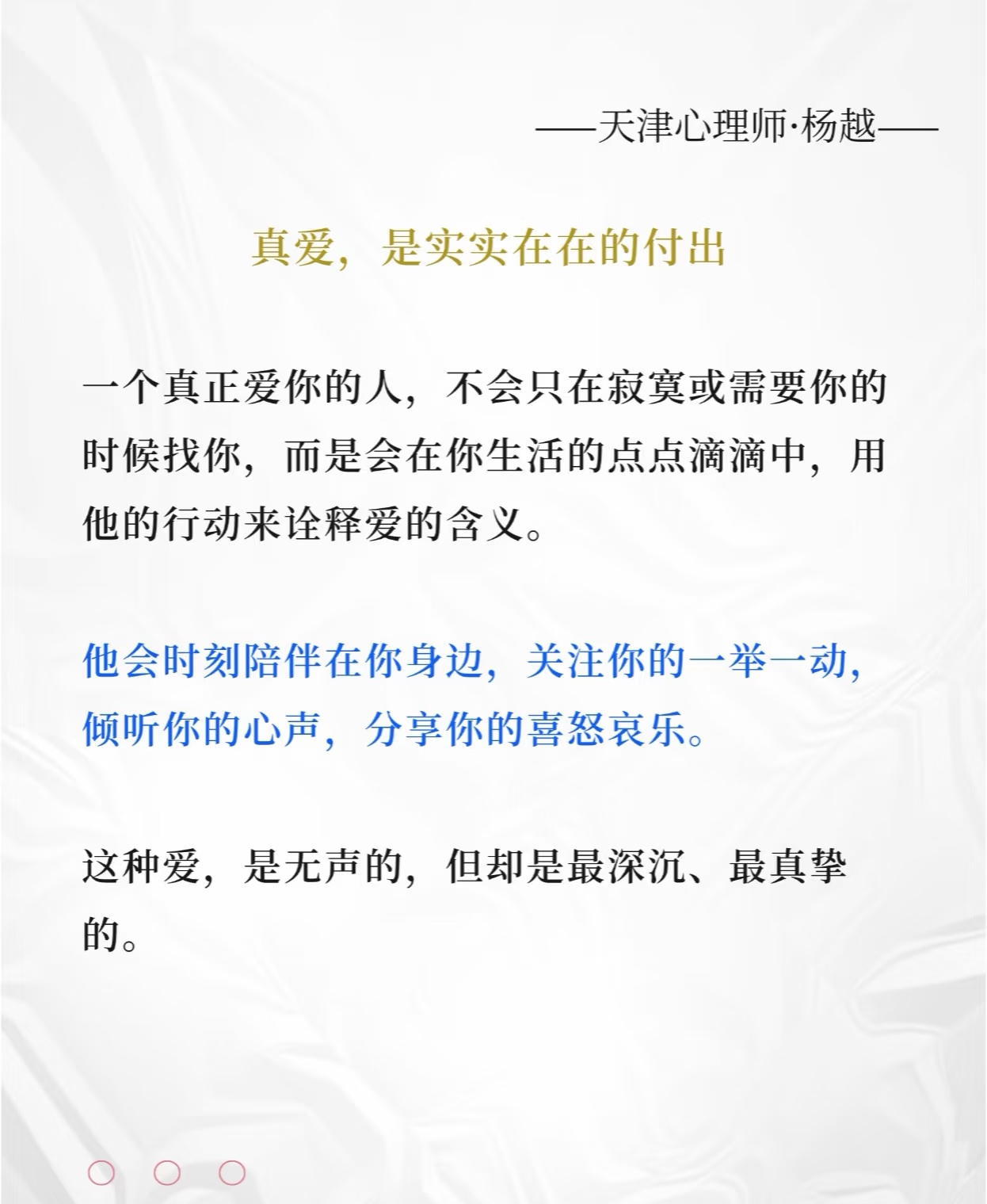 真爱,从不只是说说而已,是实实在在的付出 警惕那些只说不做的人 选择那个愿意为你付出的人 真正的爱,是生活中的细枝末节 只有那些愿意为你付出实际行动、用心守护你的人,才是值得我们去珍惜和相伴一生的伴侣