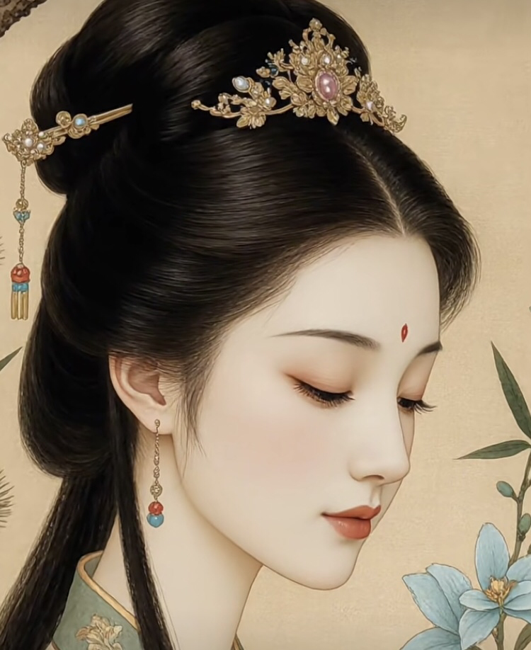 眉低眼垂,一刹宋时风月 宋画里走出来的美人,眼波低垂,心事藏进鬓边金饰与竹影梅香里。 无关风月,只是某一刻的安静,像古卷里被定格的光阴。