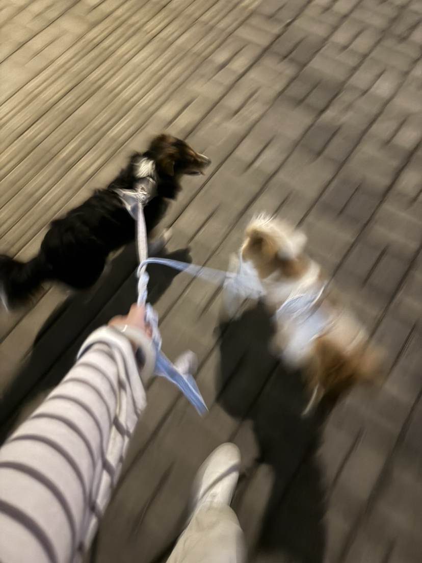 可爱又有点调皮两只小狗狗,TA们的主人一定很有爱心。