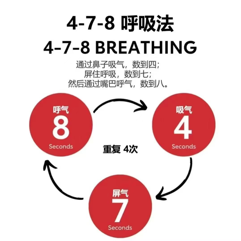 简单呼吸放松训练送给高考的莘莘学子及焦虑着急的每一位父母 情绪呼吸法:让肝火“降温”,让情绪稳定! 4-7-8呼吸法: 舌尖顶住上颚 → 4秒腹式吸气(想象肝火化作青烟)→ 屏息7秒(静心观照)→ 8秒叹气式呼气(灰烬落地) 原理:激活副交感神经,肝区血流量↑35%。 祝高考的孩子们平常心面对,专注于当下,考一科放下一科
