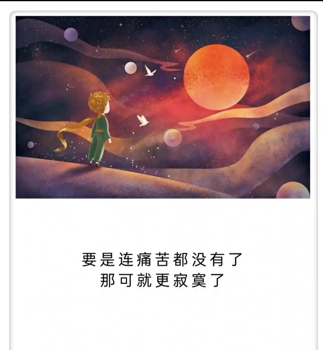 “有一天,我看了四十四次日落。你知道的,人在难过的时候就会爱上看日落。” 表达孤独中的自我慰藉。