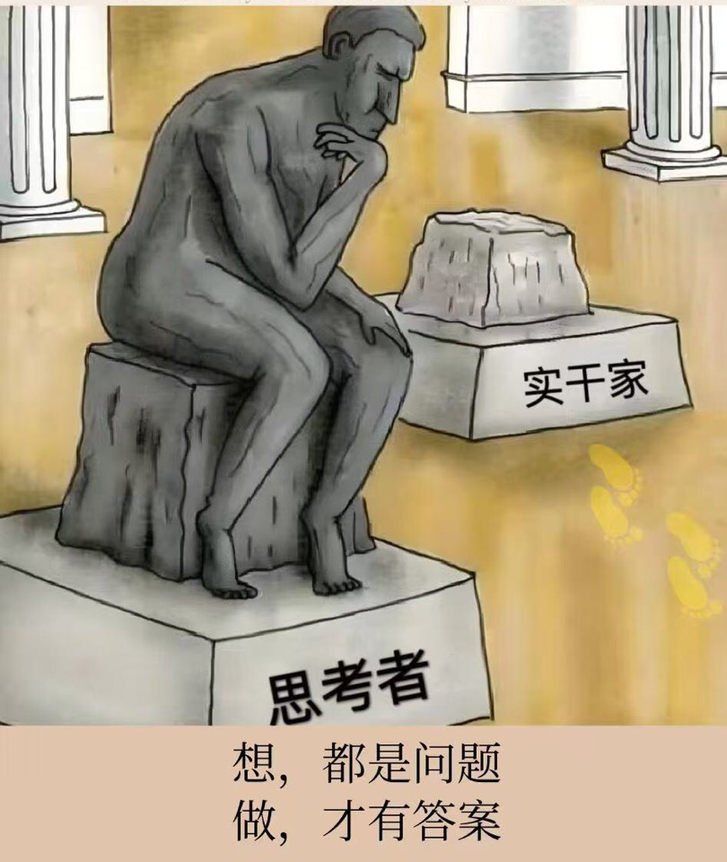 想,都是问题 做,才有答案 吾尝终日而思矣,不如须臾之所学也。行动不一定成功,不行动一定失败。路虽远,行则将至;事虽难,做则必成。