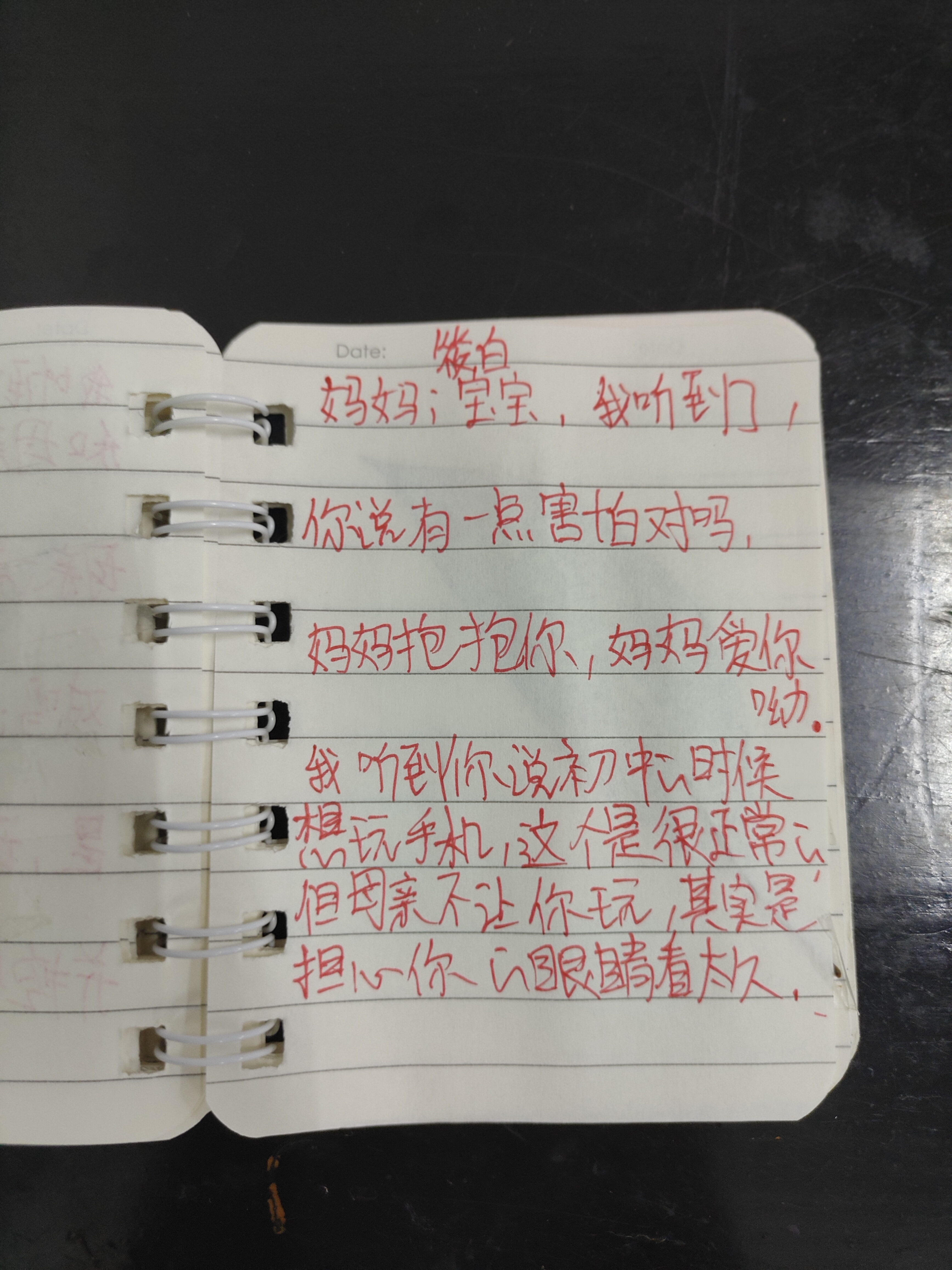 一 我听到你说有一点害怕对吗,妈妈抱抱你,妈妈爱你呦,比心心。我听到你说初中时候