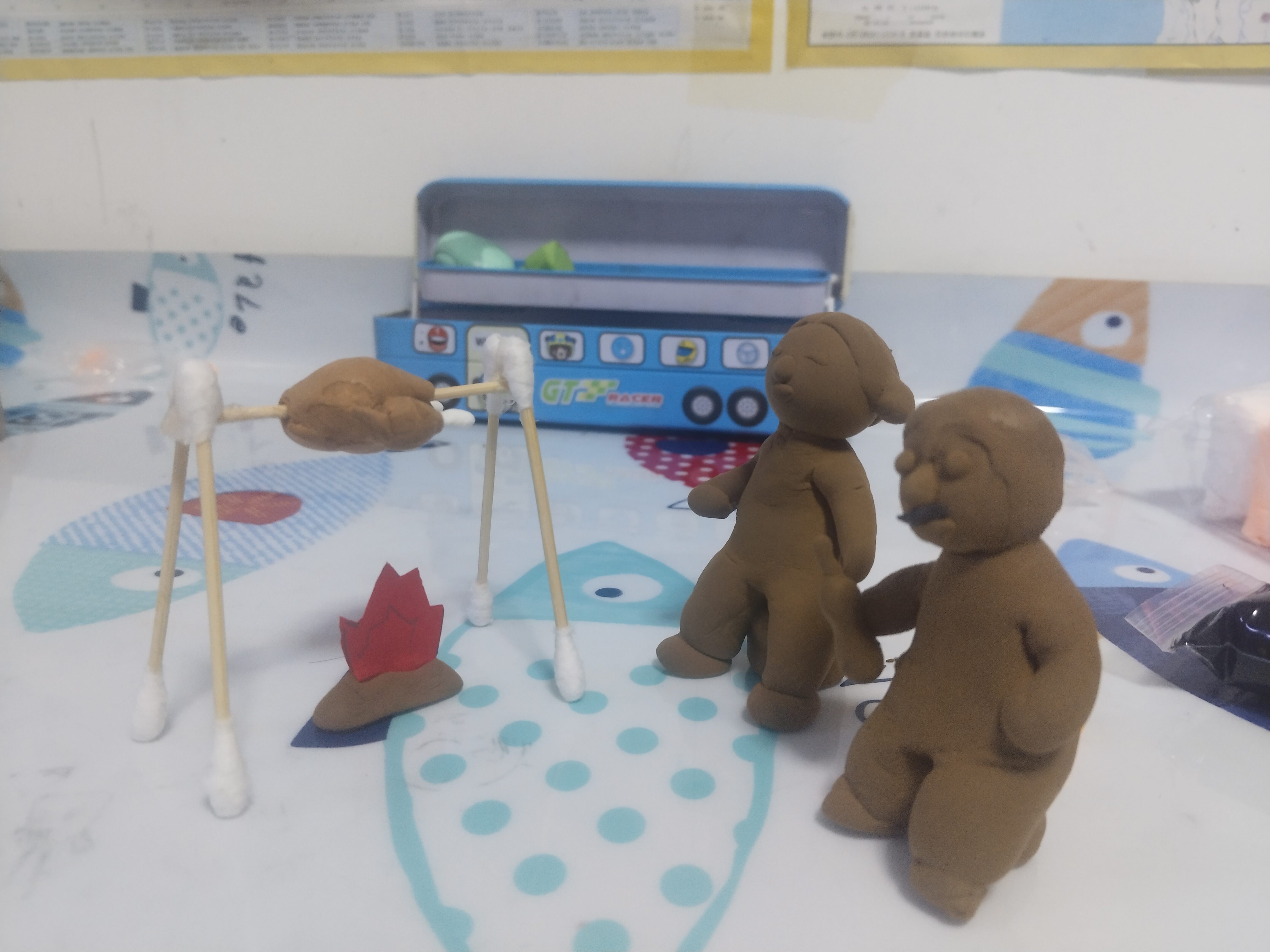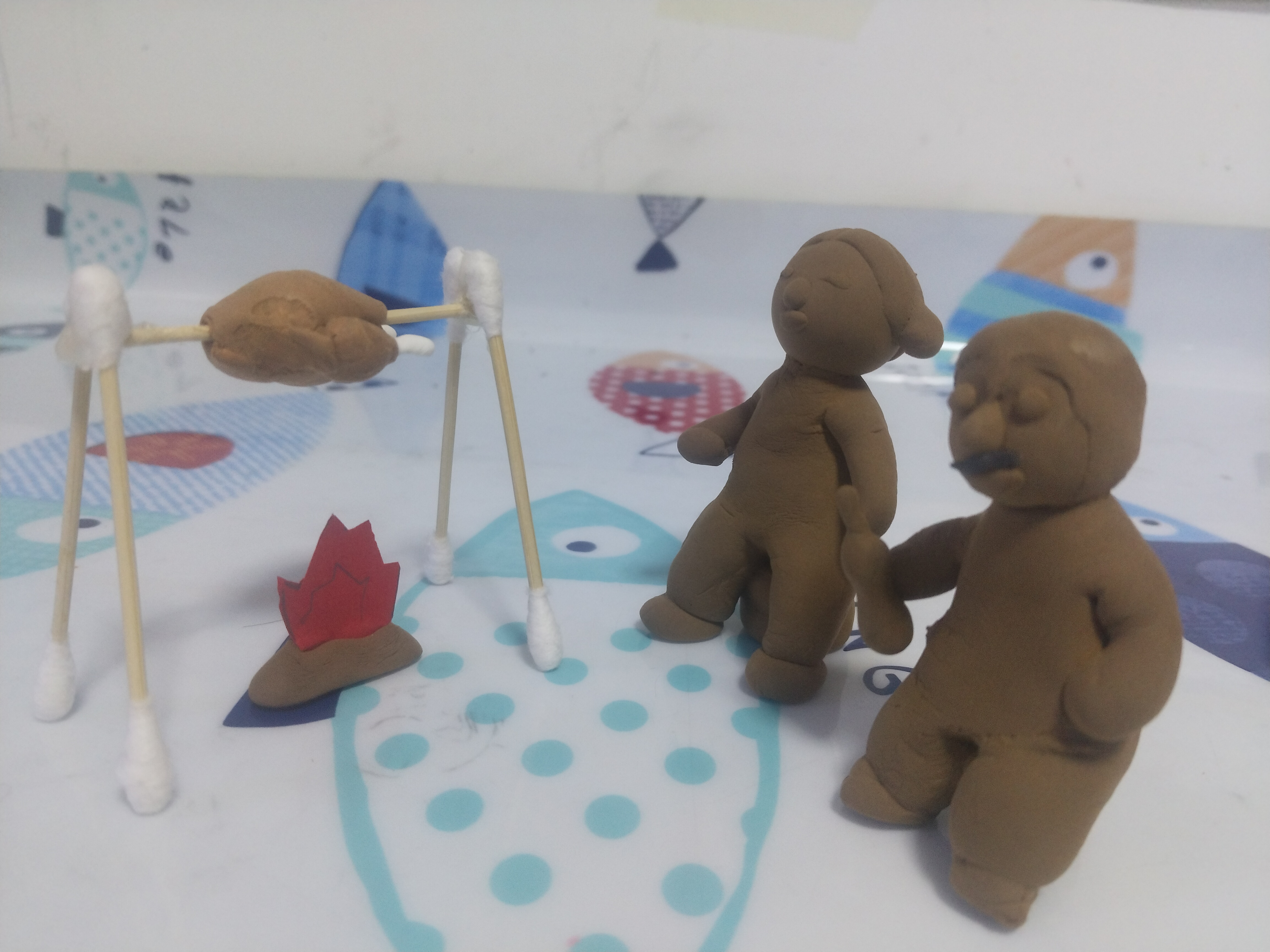 儿子做的烧烤架和火,我做的老头老太太,可能是我老了时候向往的画面