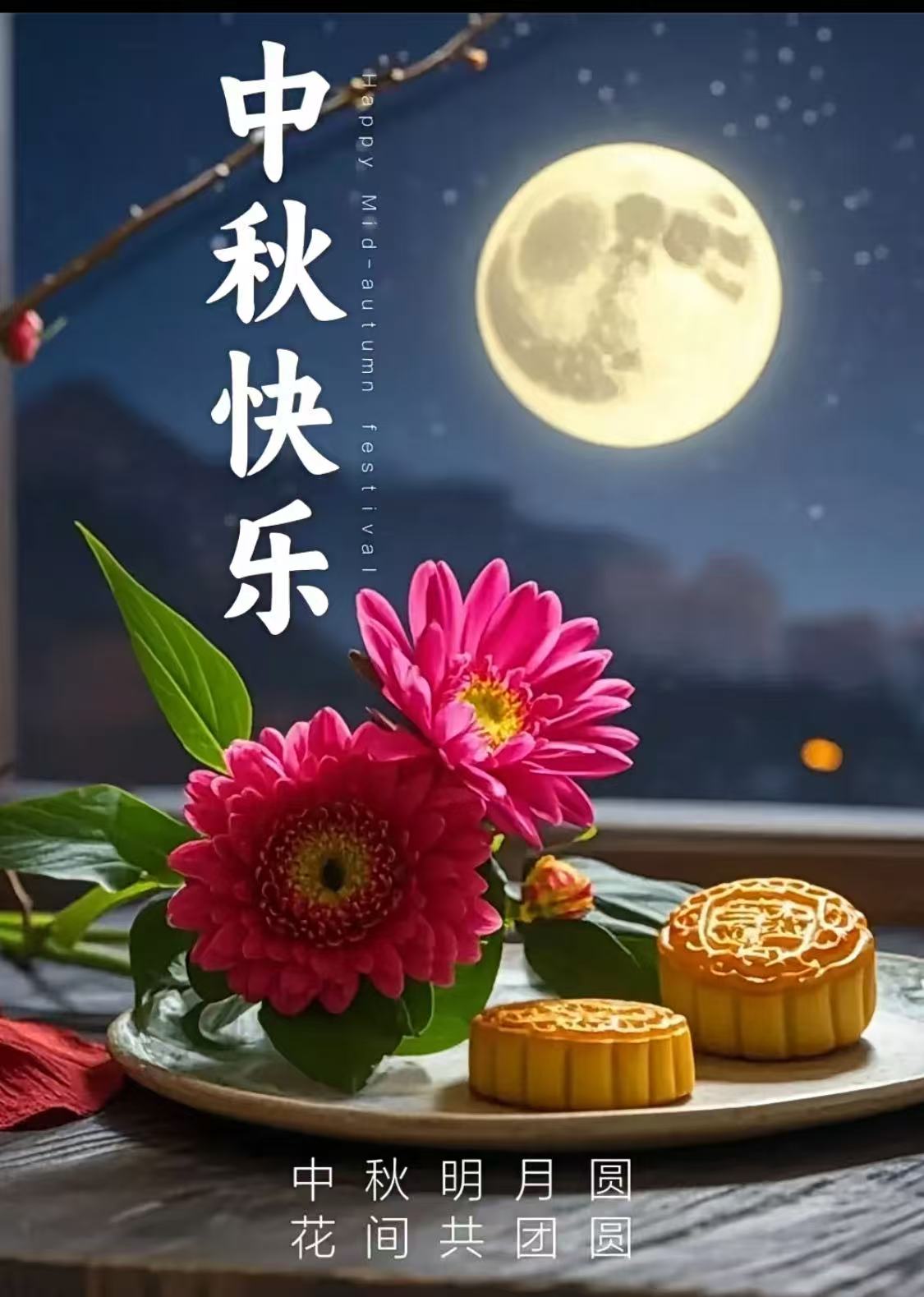 八月十五月儿圆,中秋月饼味香甜。中秋节以月之圆兆人之团圆,以明亮的月亮和家人团聚为特点,承载着人们无尽的思念和美好的祝福。衷心的祝福大家中秋节快乐!幸福平安,吉祥如意,合家团圆!