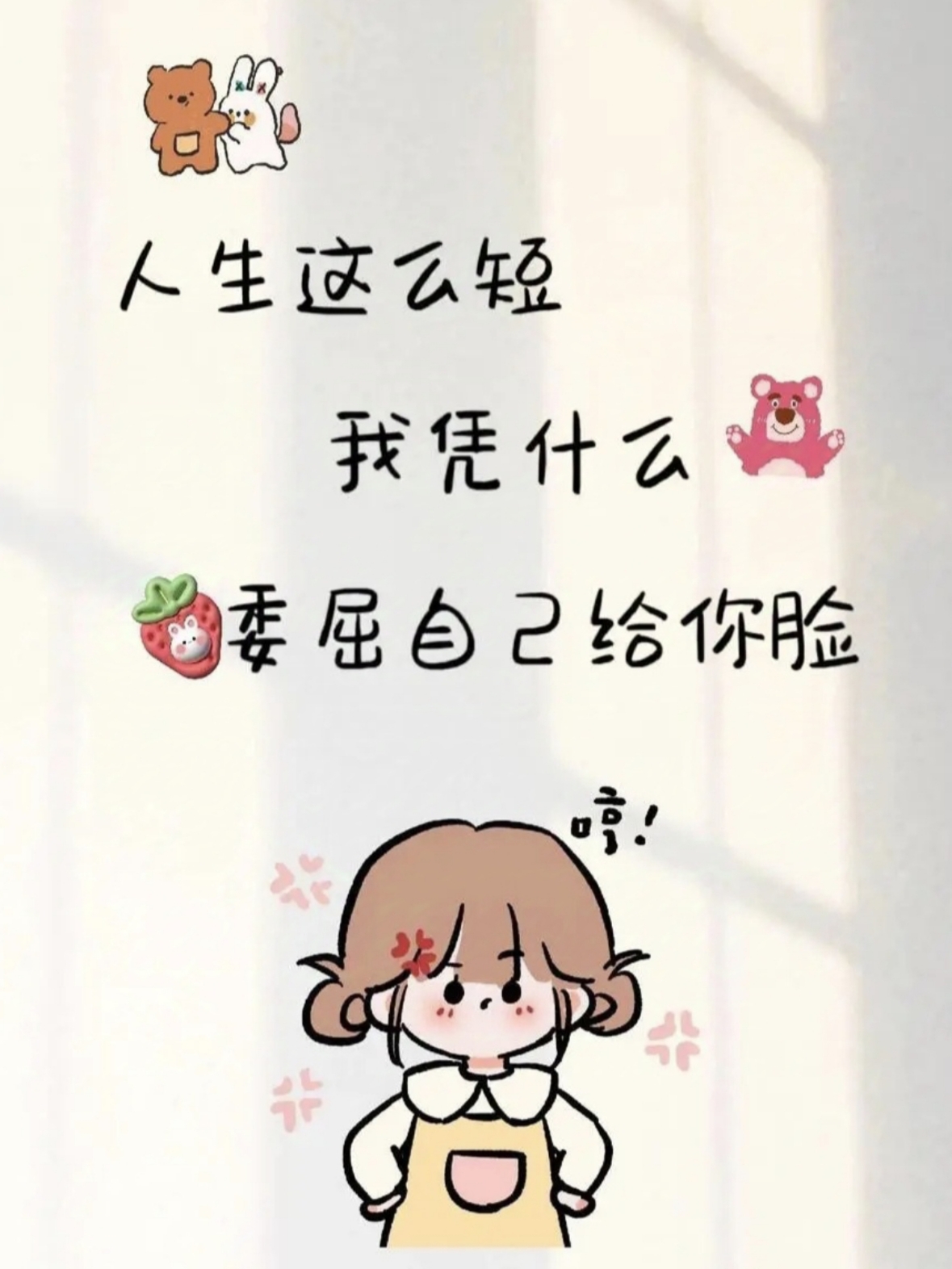 你很好,不要总觉得自己不够好,我希望有一天你能和内心的自己和解。好起来的从来不是生活,而是你自己。