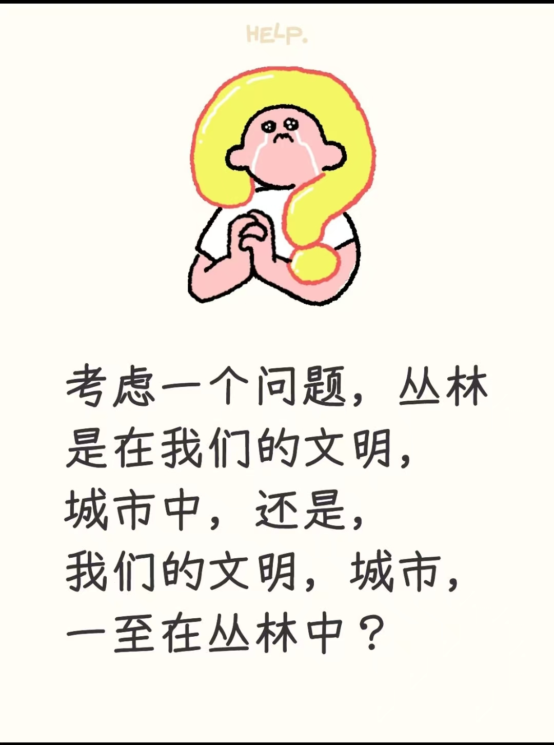 考虑一个问题,丛林是在我们的文明,城市中,还是,我们的文明,城市,一至在丛林中?