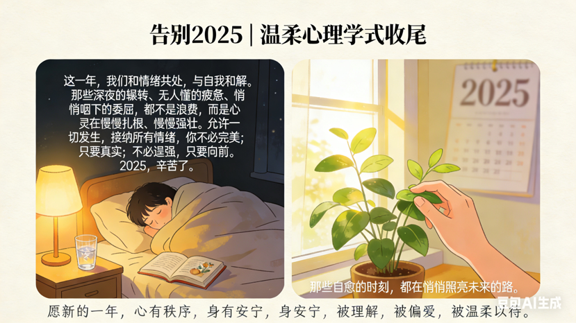 2025爱过……因为内心有爱的力量;2025累过……因为要感受肉体;2025怕过……因为对未知的不确定;2025……谢谢你让我们都安然度过!拥抱勇敢的自己!