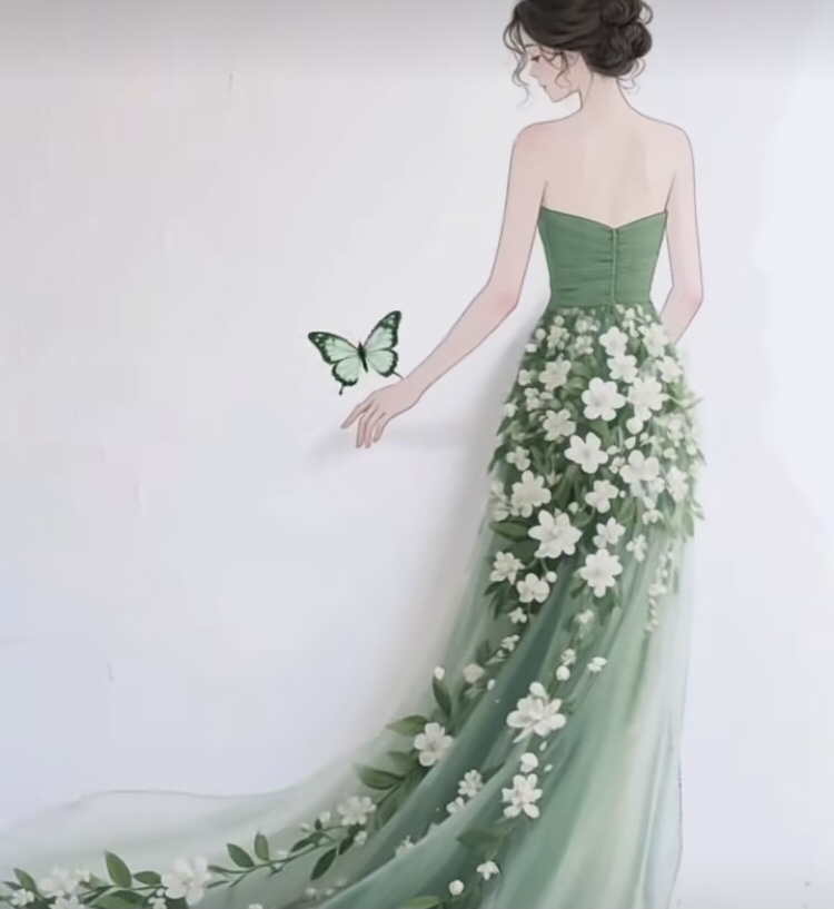 裙生花,蝶入梦, 一念春天,一袭温柔, 步步向暖!
