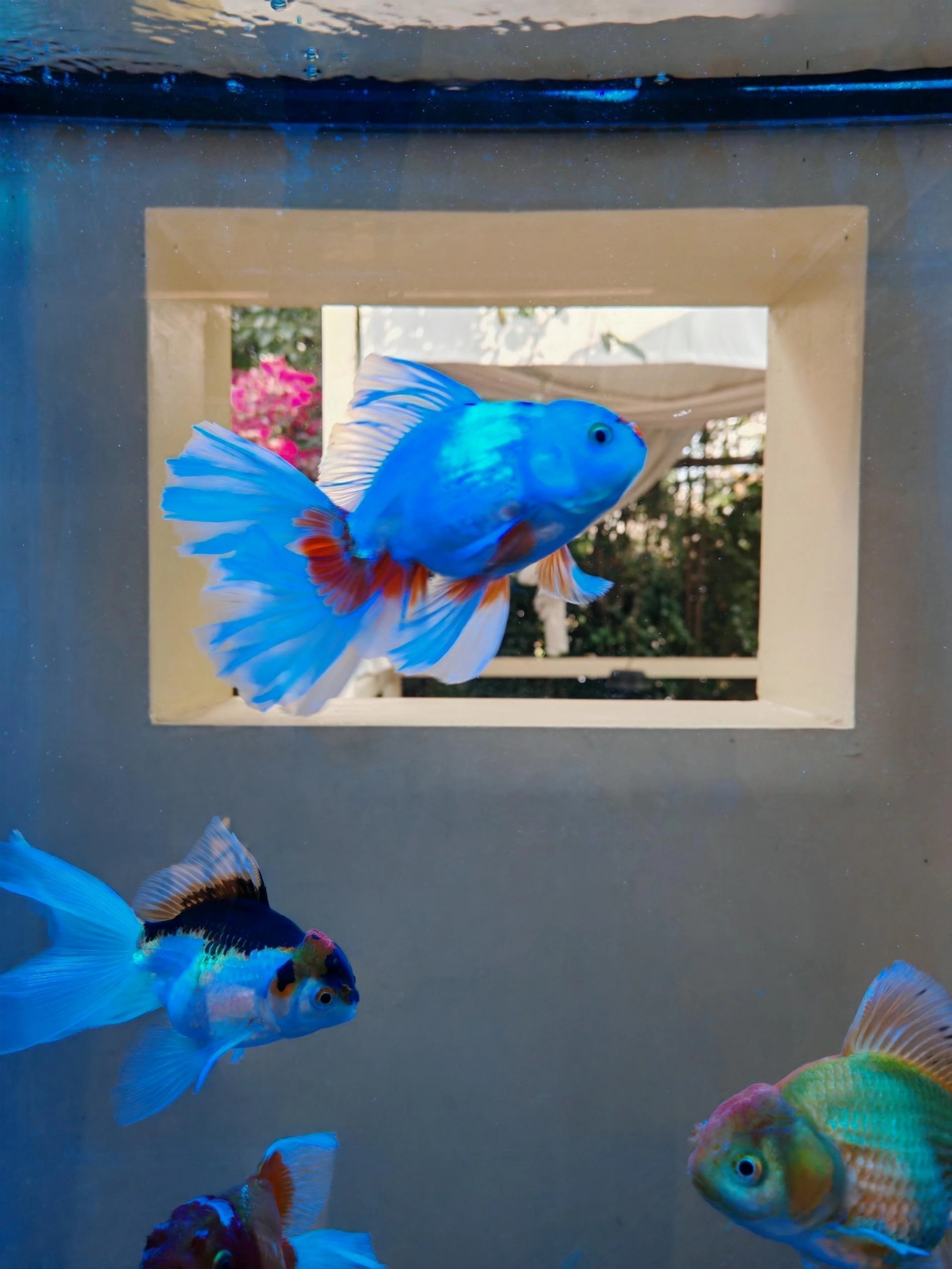 我停驻在鱼缸之前,在看出窗外的一刻,想象着或许可以来一张鱼儿在自然里游动的画面,就像它离开水面,来一场盛大的冒险。等了很久,终于捕捉到一张。
